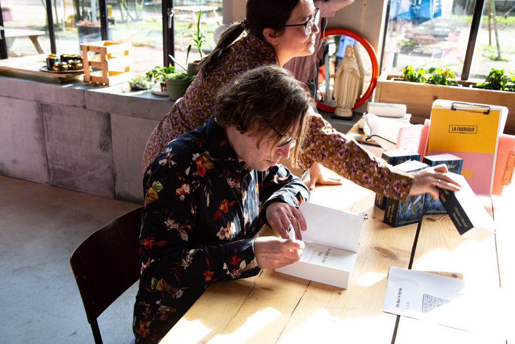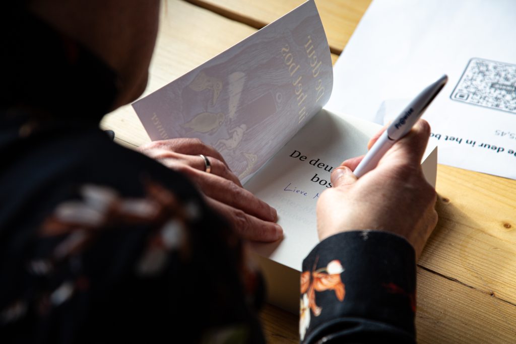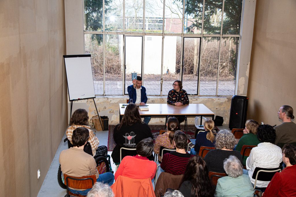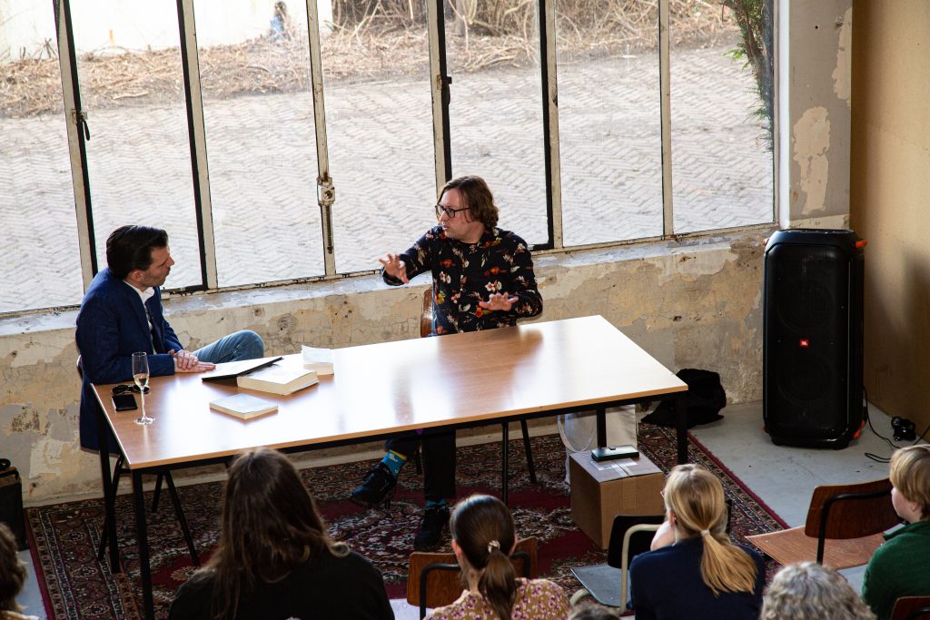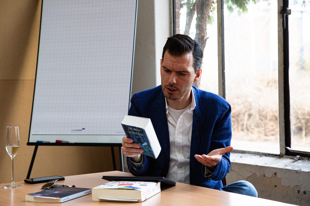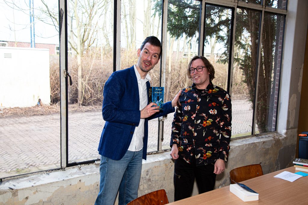 De boekpresentatie van mijn debuutroman was een succes! In een van de kamers van de Weerstand, een oud industrieel terrein dat is omgebouwd tot evenemententerrein, begon de presentatie. Ralf Engelen besprak met mij op intrigerende wijze het boek en mijn schrijverschap. In het dankwoord kreeg Ralf het eerste exemplaar uitgereikt, net als de proeflezers Marjolein van Herten en Florence van Hunsel. Illustrator Gidion van de Swaluw en schrijver Johan Klein Haneveld konden helaas niet aanwezig zijn, maar ook aan hen uitte ik mijn dank voor hun inspiratie en medewerking. Daarna konden de gasten een exemplaar van het boek kopen en laten signeren in foodbar La Fabrique onder genot van de befaamde vegetarische ‘beterballen’ en een drankje. Bij dezen wil ik ook nog fotograaf Eric Gerbers (Strooptocht.eu) bedanken voor de prachtige foto’s die hij tijdens het evenement heeft gemaakt, zoals de onderstaande.
